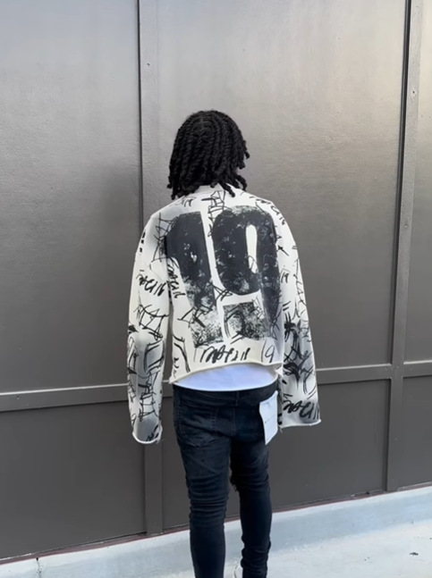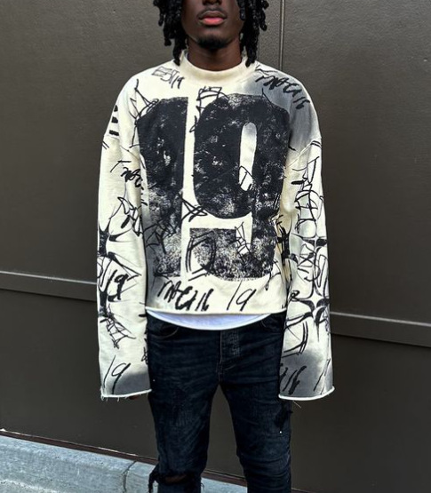 Total destruction. The Decay 19 Crop Knit takes the Distressed trend to the extreme with ripped hems, a dirty effect, and a bold cropped cut, inspired by the post-apocalyptic Y2K aesthetic.
